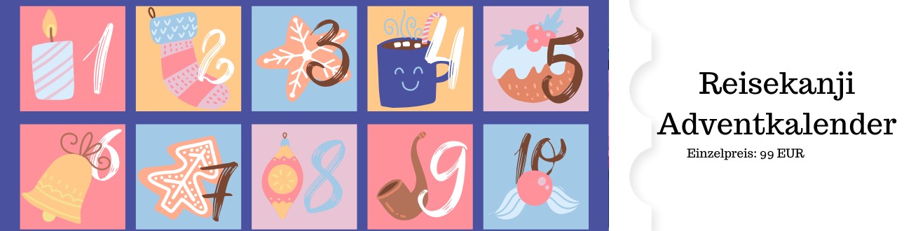 Du möchtest dich für deine Japanreise vorbereiten? Dann ist dieser neue Adventkalender perfekt für dich! Mit diesem Kurs lernst du die 31 wichtigsten Schriftzeichen für deine Japan Reise. Du bekommst von mir zwischen 1. und 31. Dezember jeden Tag ein 2-15-minütiges Video (manchmal ein bisschen länger) zu jeweils einem Kanji, seinen Lesungen, der richtigen Strichfolge und Wissenswertem zur Sprache und Kultur. Zusätzlich bekommst du Beispielsätze für alle Kanji UND die Grammatikerklärungen, die du brauchst, um diese Sätze zu verstehen!